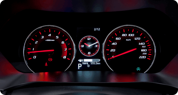 Walaupun tampilan luar sangatlah sporty, tampilan interior terbilang sporty dan classy. New meter cluster / spedometer yang tertanam memiliki desain 2 bulatan khas sports car dengan layar MID berwarna pada bagian tengah.